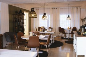 Hotellin viihtyisää aamiaishuonetta voi varata myös kokoustilaksi ja päivätilaisuuksiin, kysy tarkemmin.