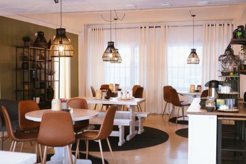 Nauti rauhassa aamiainen viihtyisässä aamiaishuoneessa tai omaan tahtiin huoneen jääkaapista.